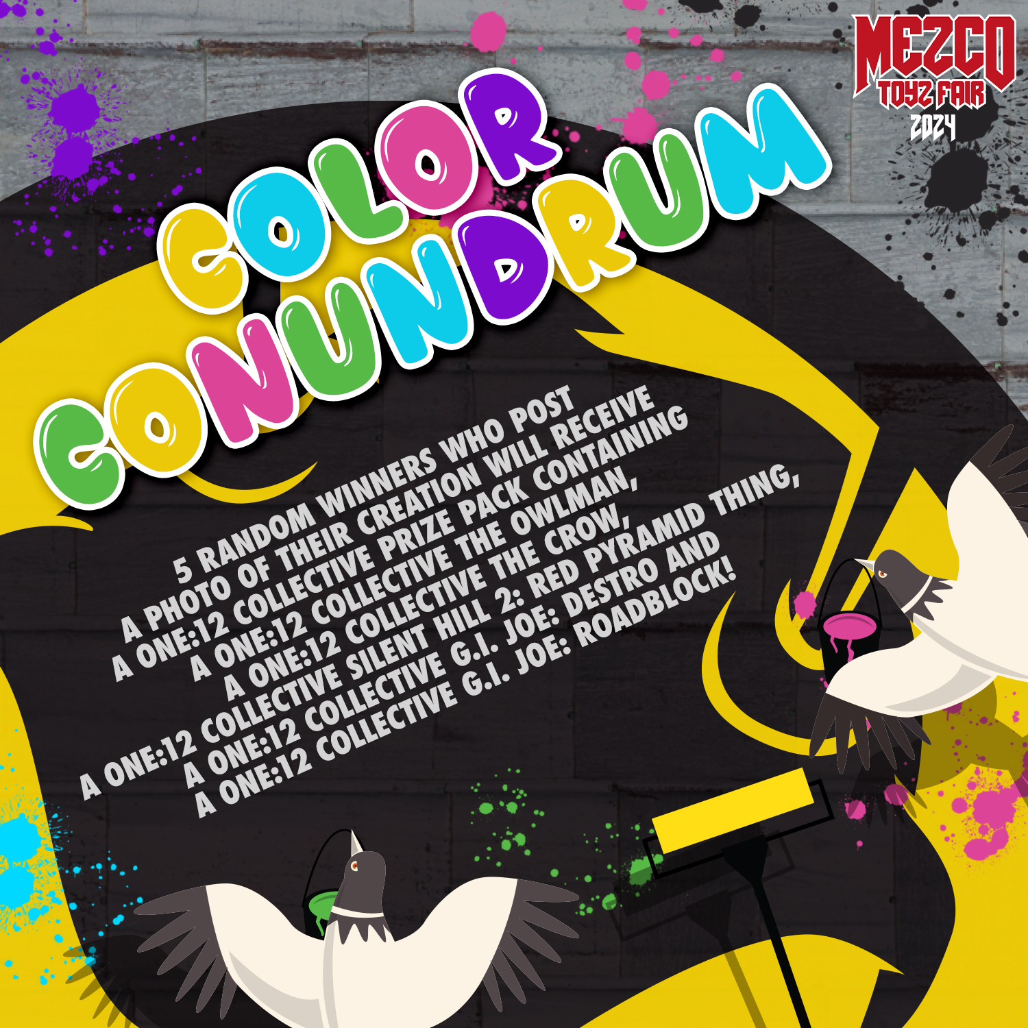5 random winners who post a photo of their creation will receive a One:12 Collective Prize Pack containing a One:12 Collective The Owlman, a One:12 Collective The Crow, a One:12 Collective Silent Hill 2: Red Pyramid Thing, a One:12 Collective G.I. Joe: Destro, and a One:12 Collective G.I. Joe: Roadblock!