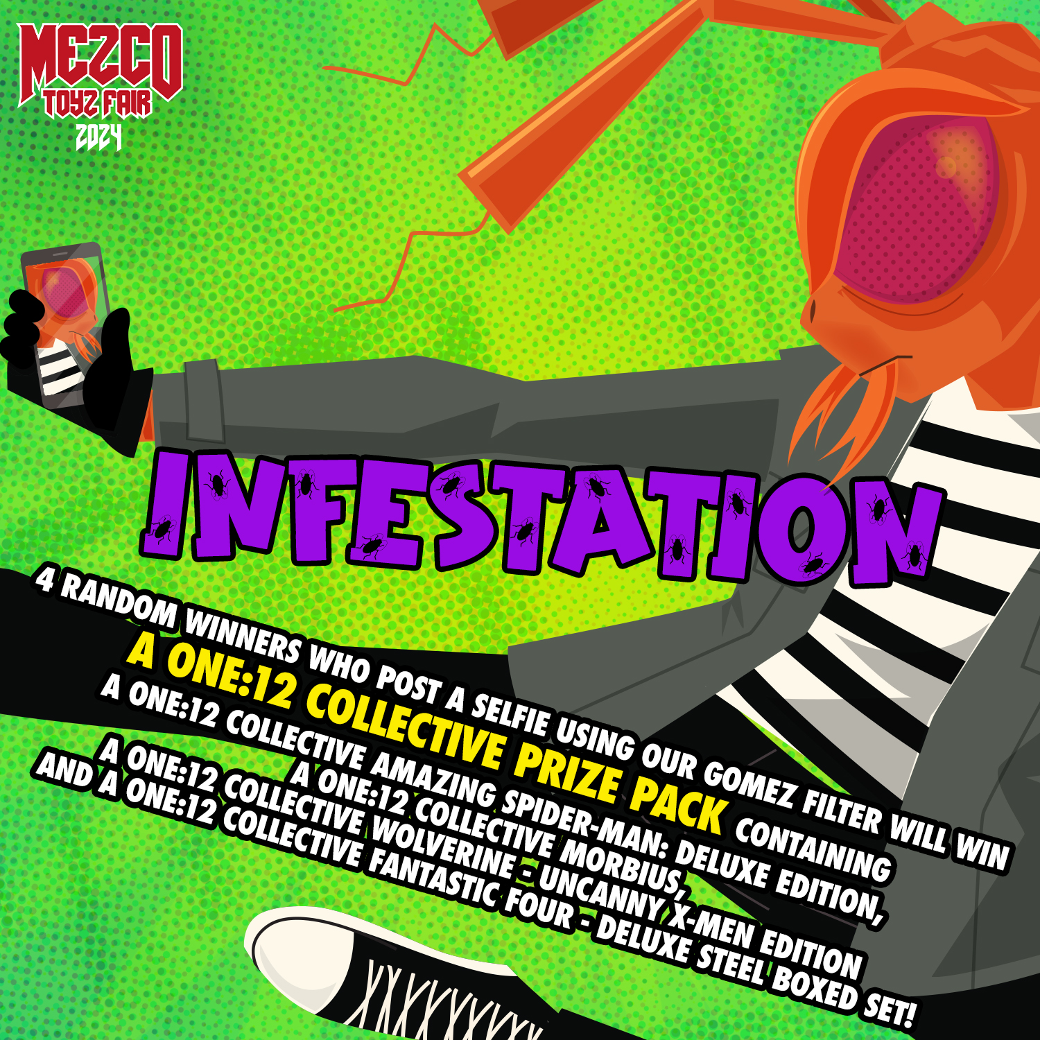 4 random winners who post a selfie using our Gomez filter will win a One:12 Collective Prize Pack containing a One:12 Collective Amazing Spider-Man: Deluxe Edition, a One:12 Collective Morbius, a One:12 Collective Wolverine - Uncanny X-Men Edition, and a One:12 Collective Fantastic Four - Deluxe Steel Boxed Set!
